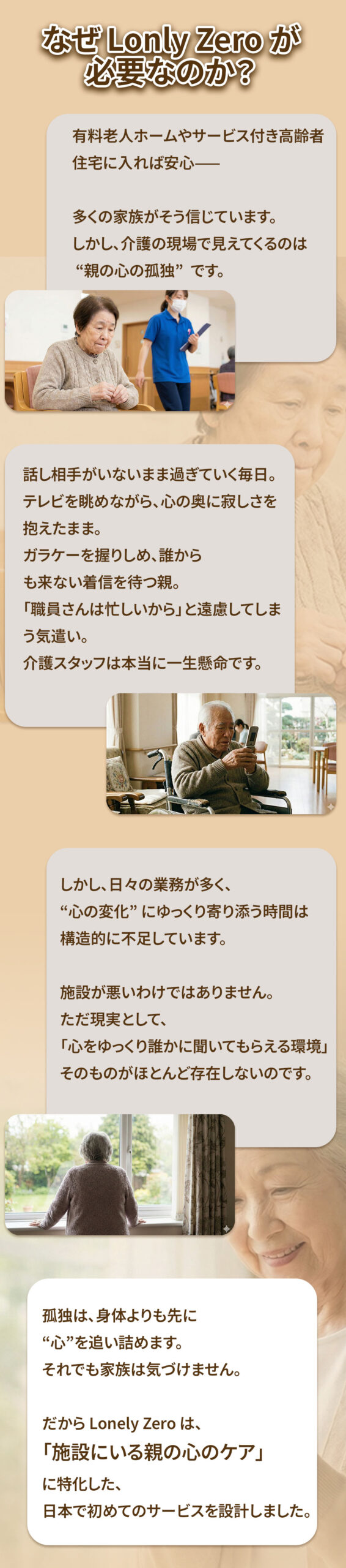 施設にいる親の孤独を減らす定期会話サービス
